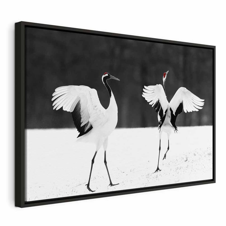 Obraz - Tańczące żurawie (1-częściowy) szeroki rozmiar 60x40, wykończenie W ramie drewnianej czarnej