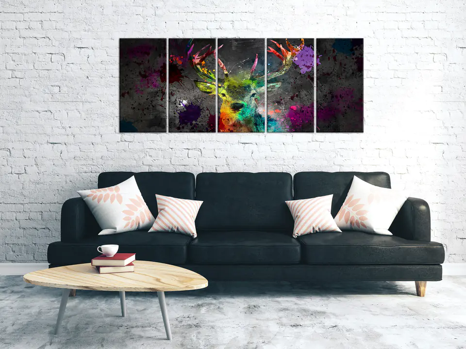 Obraz - Tęczowy jeleń (5-częściowy) wąski rozmiar 100x40, wykończenie Standard