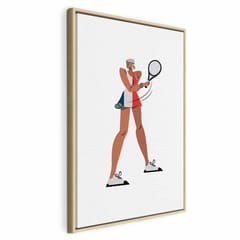 Obraz - Tenisistka z rakietą na jasnym tle - ilustracja rozmiar 80x120, wykończenie W ramie drewnianej naturalnej