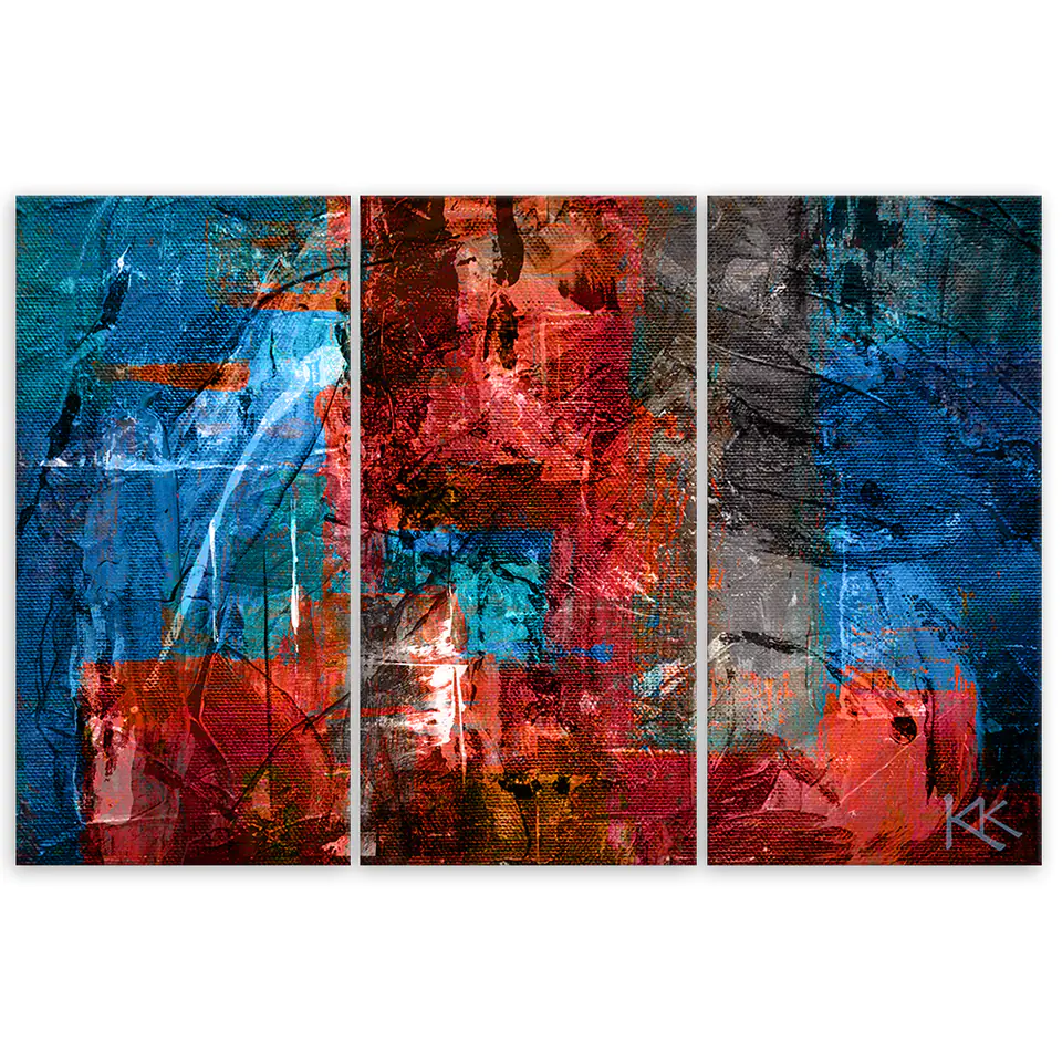 Obraz trzyczęściowy Deco Panel, Czerwona abstrakcja ręcznie malowana Rozmiar 120x80