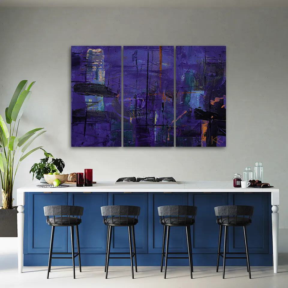 Obraz trzyczęściowy Deco Panel, Fioletowa abstrakcja ręcznie malowana (Rozmiar 60x40)
