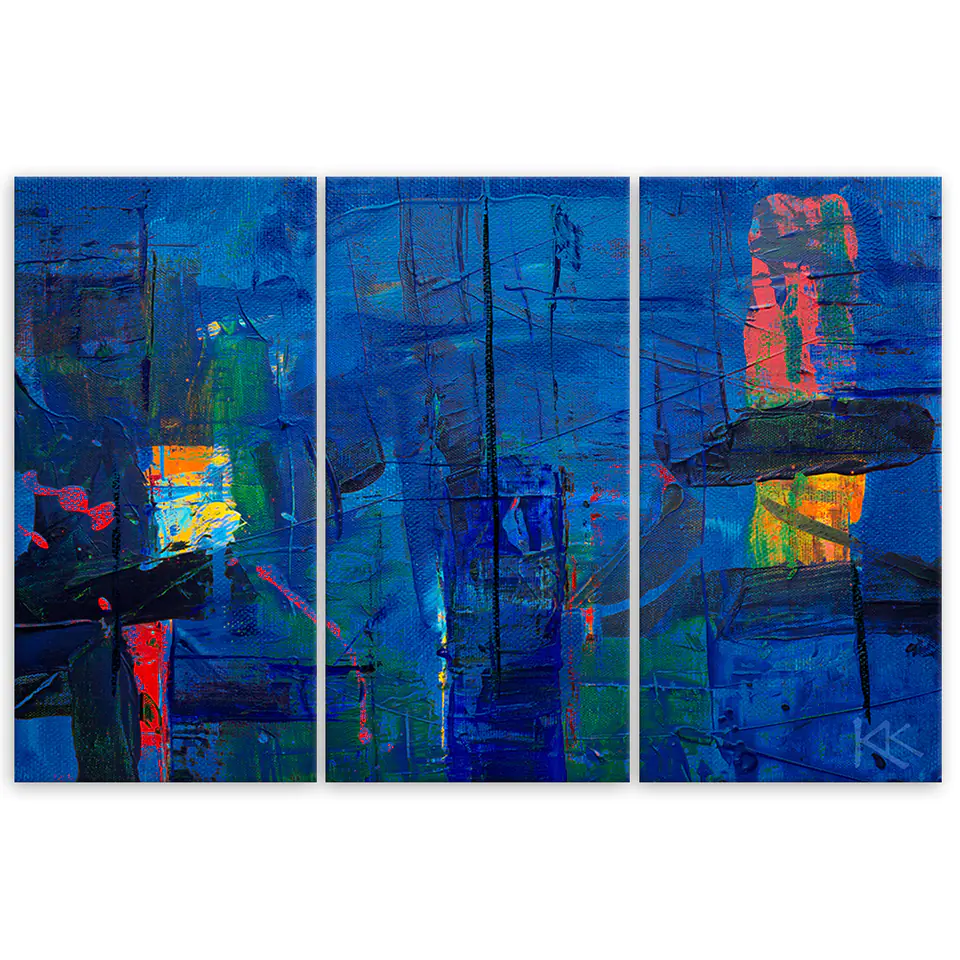 Obraz trzyczęściowy Deco Panel, Niebieska abstrakcja ręcznie malowana (Rozmiar 120x80)