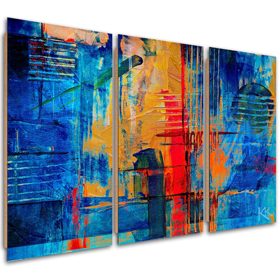 Obraz trzyczęściowy Deco Panel, Niebieska abstrakcja ręcznie malowana (Rozmiar 150x100)