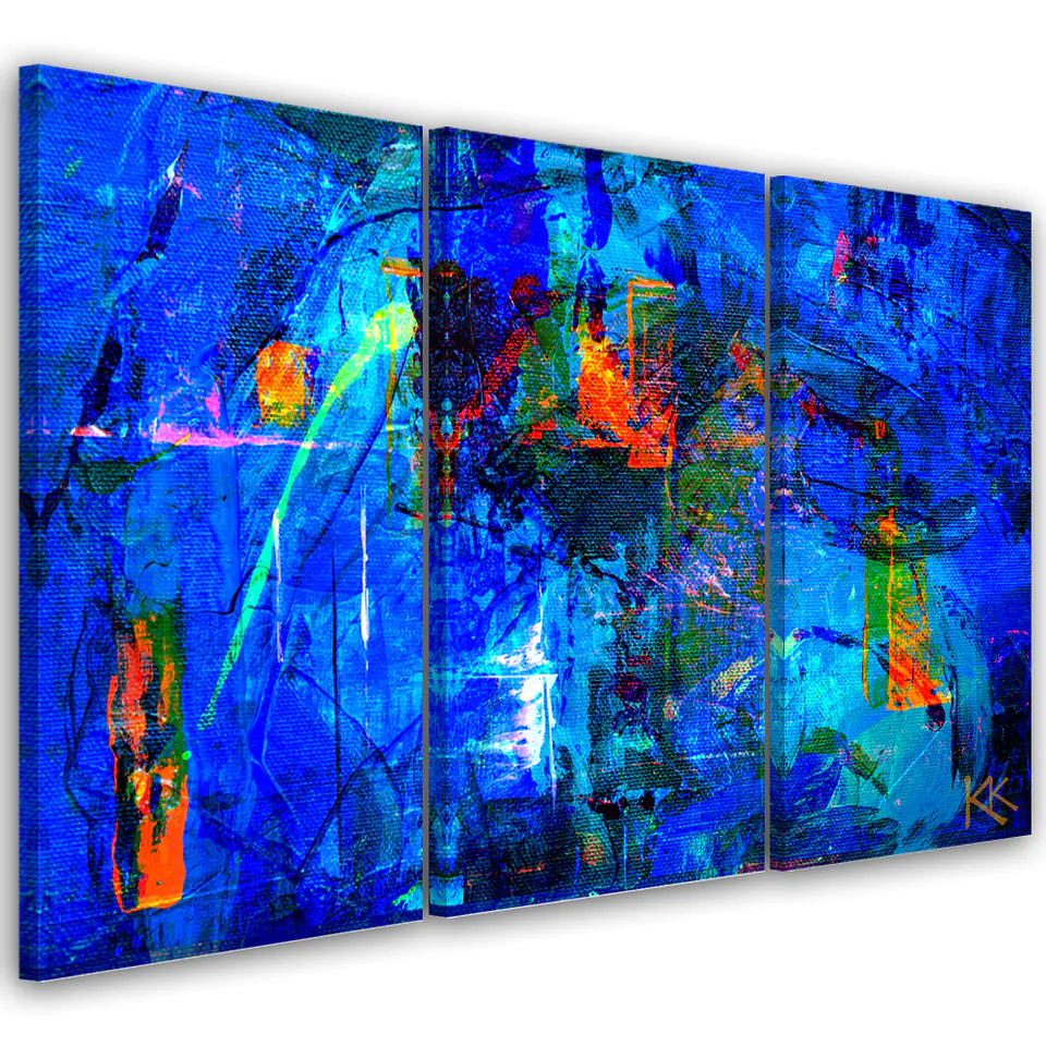 Obraz trzyczęściowy na płótnie, Niebieska abstrakcja ręcznie malowana (Rozmiar 150x100)