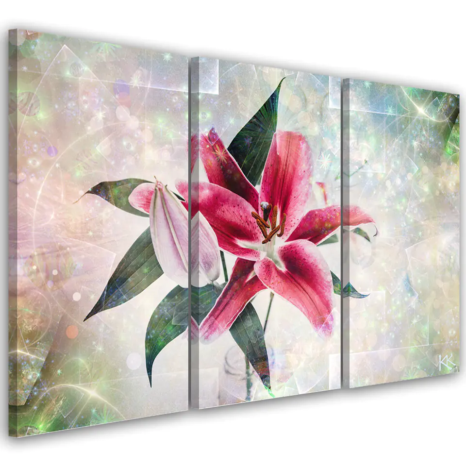 Obraz trzyczęściowy na płótnie, Różowa lilia (Rozmiar 120x80)