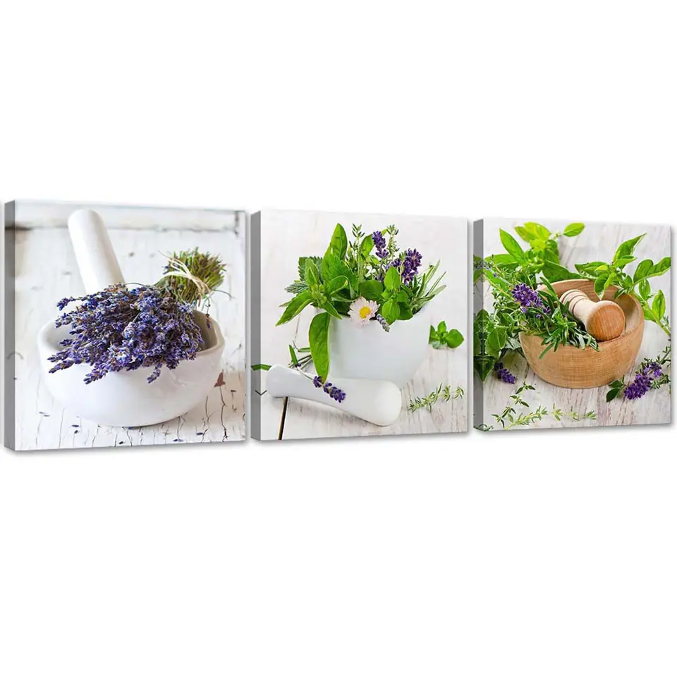 Obraz trzyczęściowy na płótnie, Zioła w kuchni Rozmiar 90x30