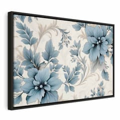 Obraz - Turkusowe kwiaty w retro klimacie florystyczne ornamenty rozmiar 120x80, wykończenie W ramie drewnianej czarnej