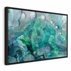 Obraz - Turkusowe liście (1-częściowy) szeroki rozmiar 120x80, wykończenie W ramie drewnianej czarnej
