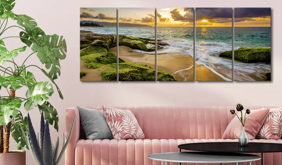 Obraz - Turkusowe morze (5-częściowy) wąski rozmiar 200x80, wykończenie Premium Print