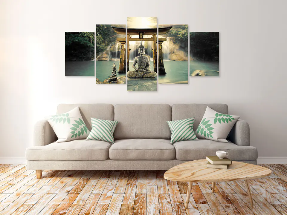 Obraz - Uśmiech Buddy (5-częściowy) szeroki rozmiar 200x100, wykończenie Premium Print