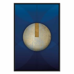 Obraz - W cieniu klasycznego błękitu (1-częściowy) - złote koło w abstrakcji rozmiar 80x120, wykończenie W ramie drewnianej czarnej