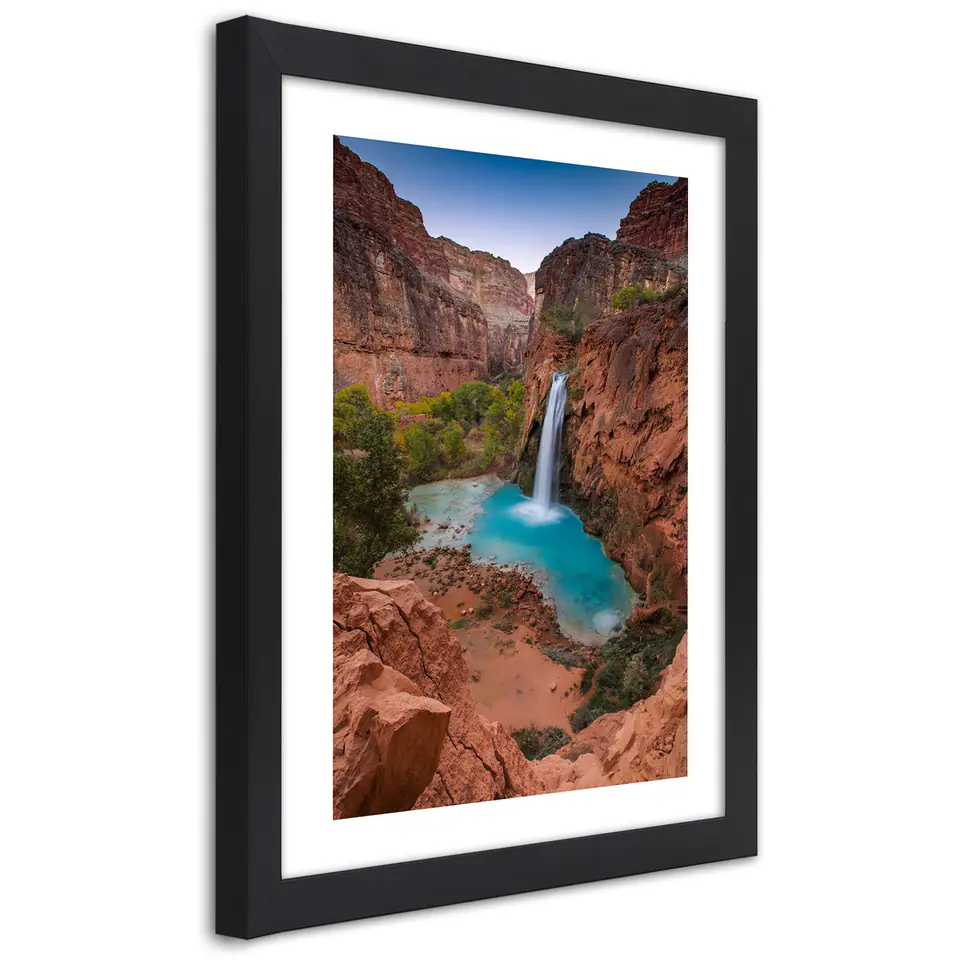 Obraz w ramie, Błękitny wodospad wśród skał Rozmiar 30x45