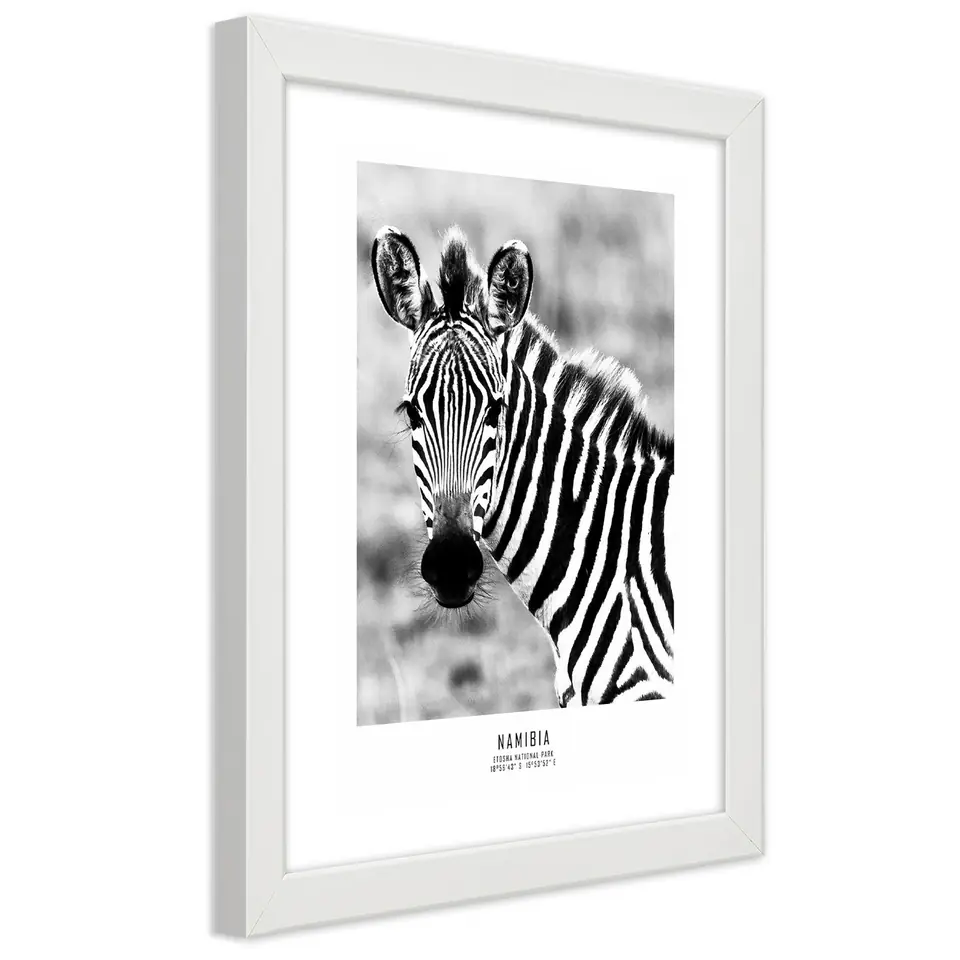 Obraz w ramie, Ciekawska zebra (Rozmiar 20x30)