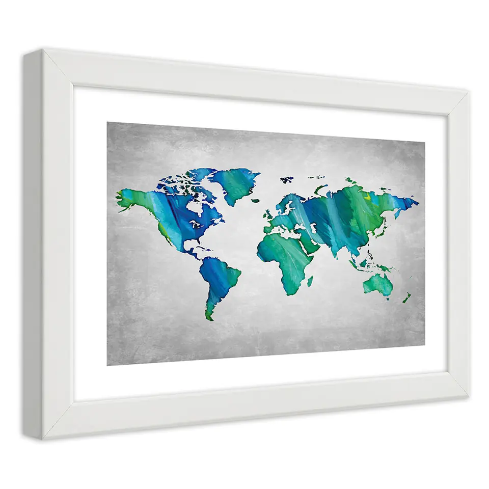 Obraz w ramie, Kolorowa mapa świata na betonie (Rozmiar 100x70)