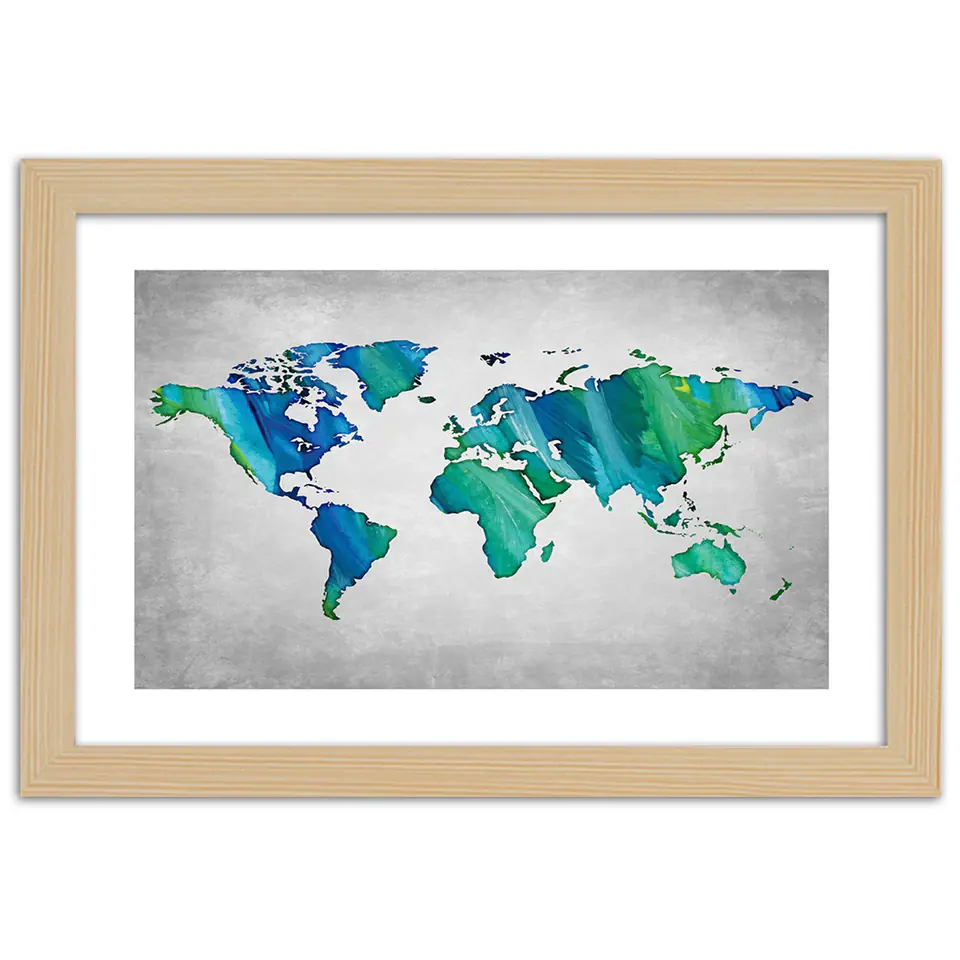 Obraz w ramie, Kolorowa mapa świata na betonie Rozmiar 45x30