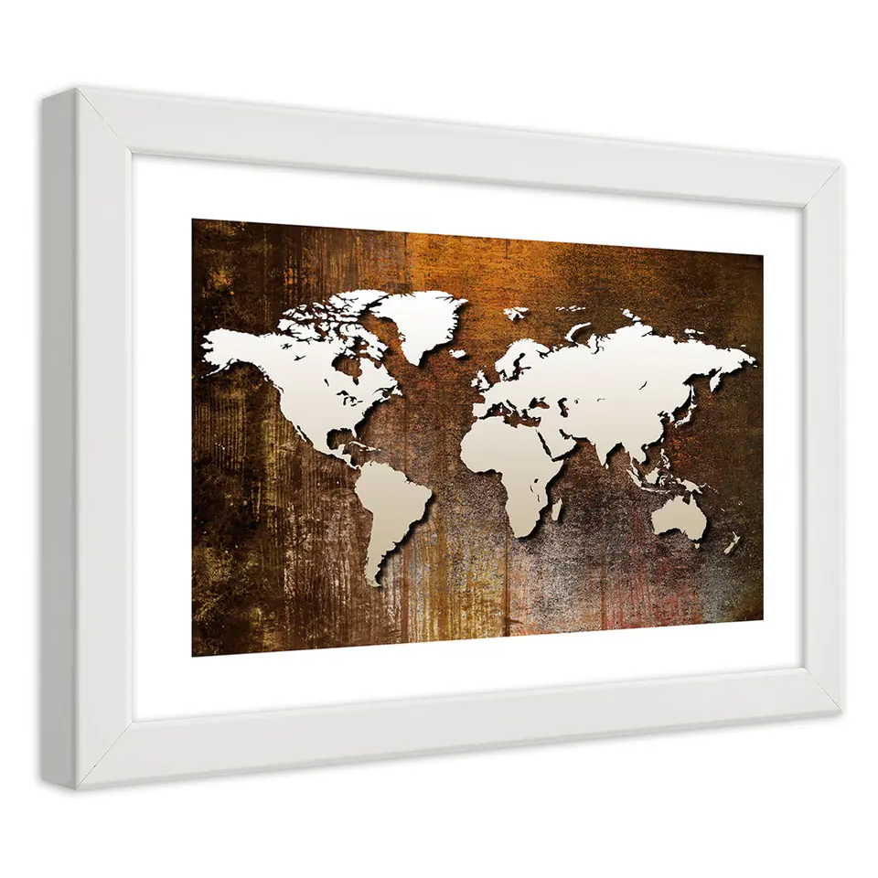 Obraz w ramie, Mapa świata na drewnie (Rozmiar 45x30)