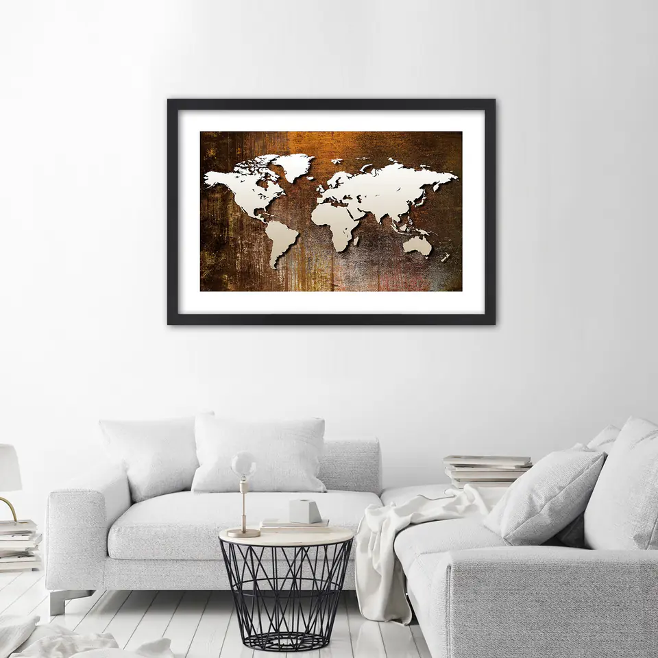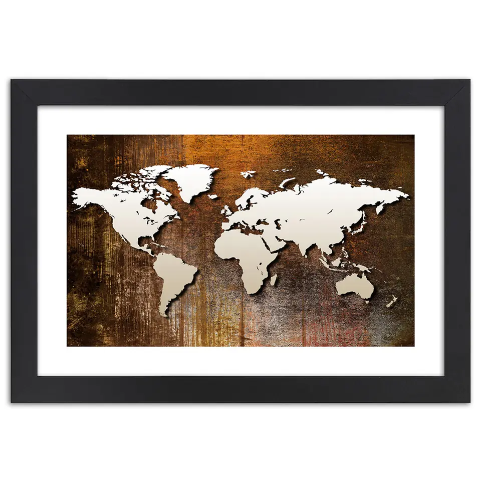 Obraz w ramie, Mapa świata na drewnie Rozmiar 90x60