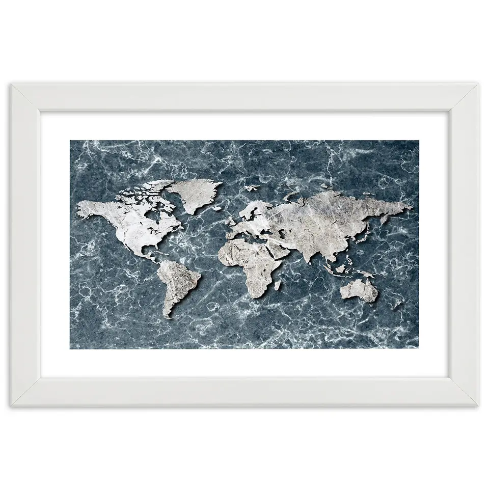 Obraz w ramie, Mapa świata na marmurze Rozmiar 60x40