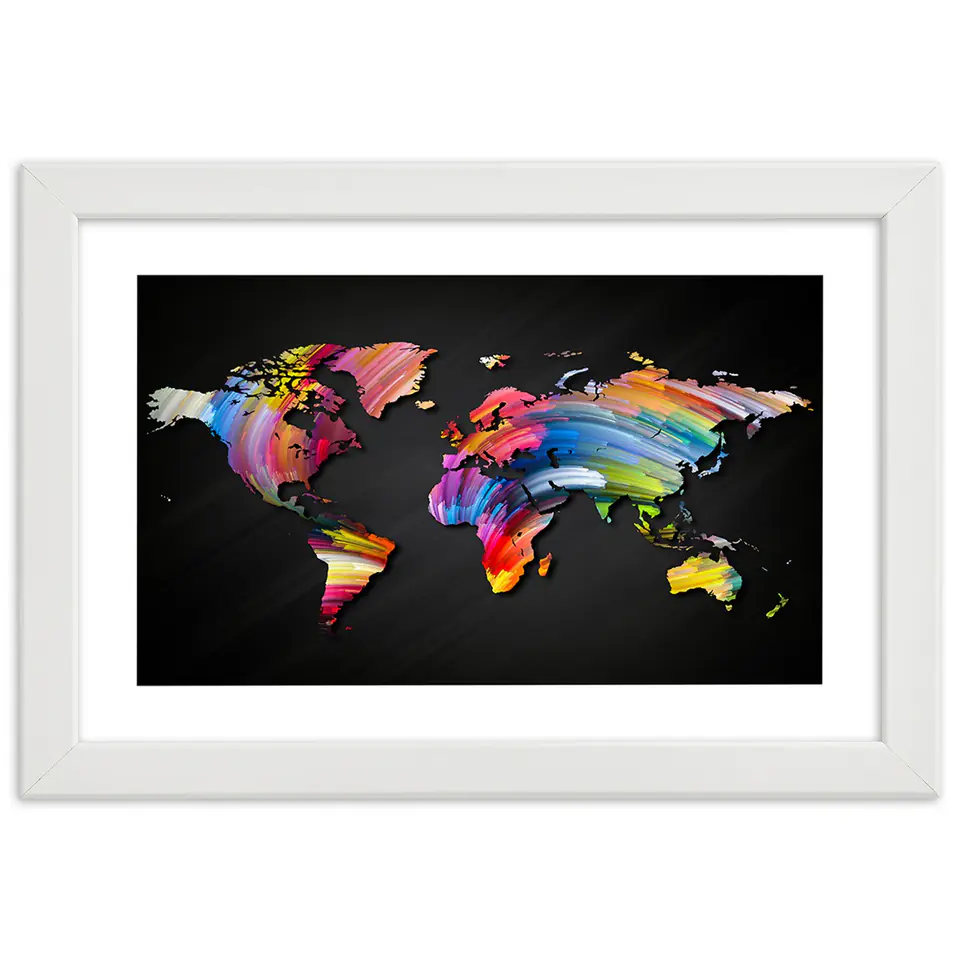 Obraz w ramie, Mapa świata w różnych kolorach (Rozmiar 45x30)