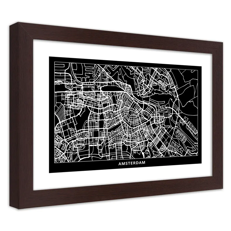 Obraz w ramie, Plan miasta Amsterdam Rozmiar 90x60