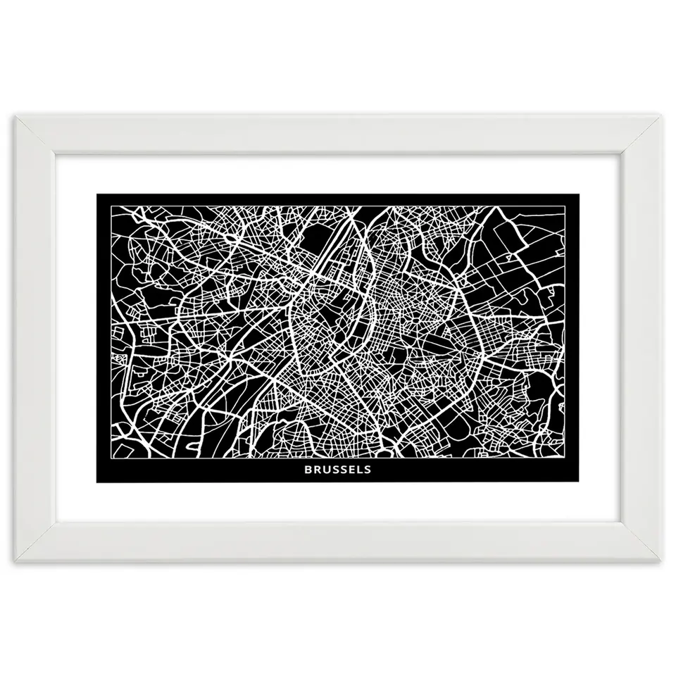 Obraz w ramie, Plan miasta Bruksela (Rozmiar 30x20)