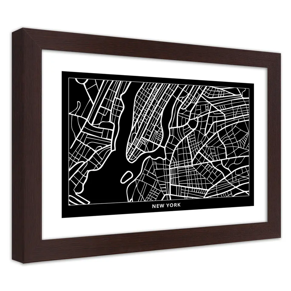 Obraz w ramie, Plan miasta Nowy Jork (Rozmiar 100x70)