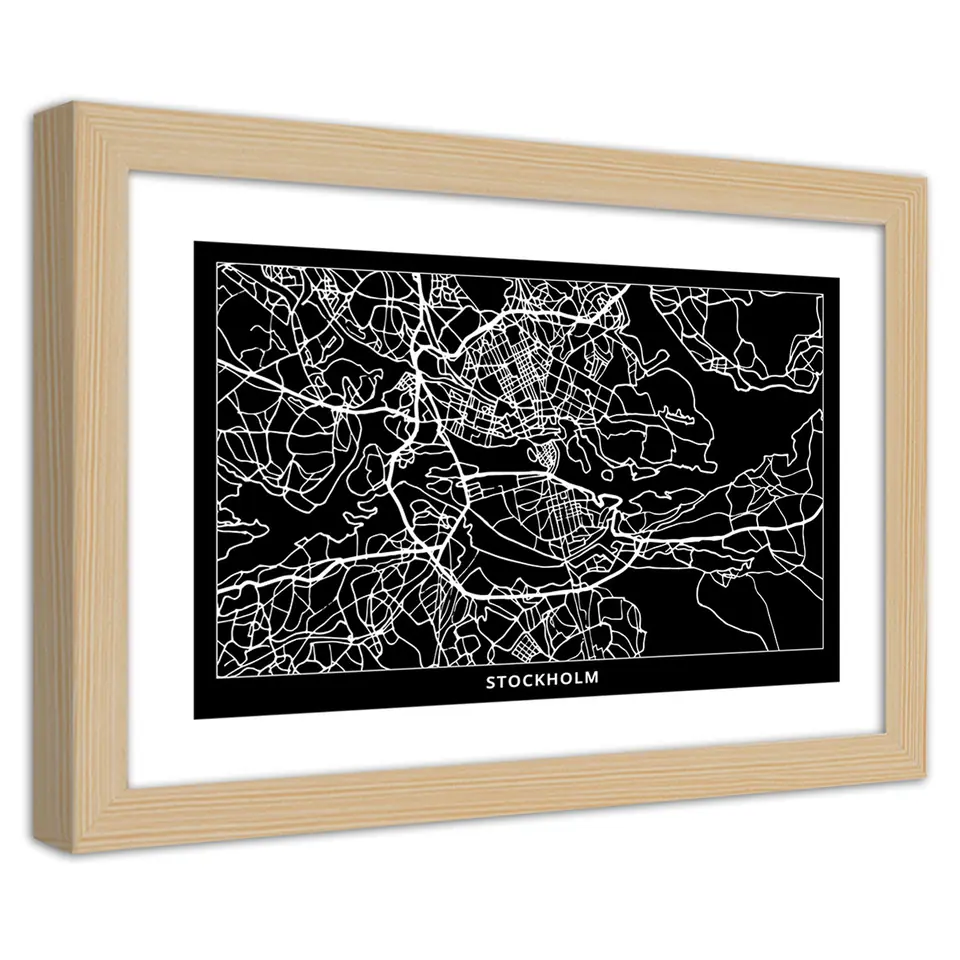 Obraz w ramie, Plan miasta Sztokholm Rozmiar 60x40