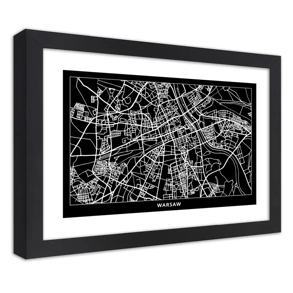 Obraz w ramie, Plan miasta Warszawa (Rozmiar 60x40)