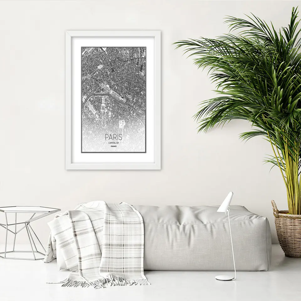 Obraz w ramie, Plan Paryża (Rozmiar 40x60)