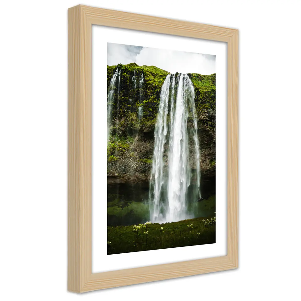 Obraz w ramie, Wodospad w zielonych górach Rozmiar 70x100