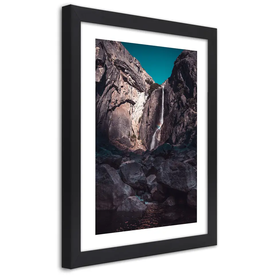 Obraz w ramie, Wodospad wśród wysokich skał (Rozmiar 60x90)