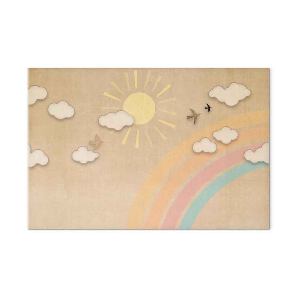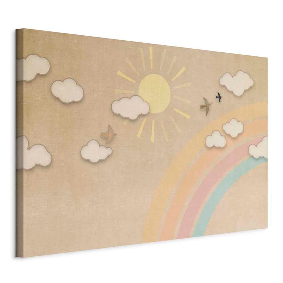 Obraz - Wakacyjne niebo - słoneczny dzień z tęczą i odlatujące ptaszki rozmiar 30x20, wykończenie Standard