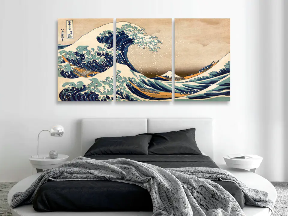 Obraz - Wielka fala w Kanagawie (3-częściowy) rozmiar 120x60, wykończenie Standard