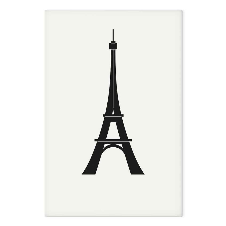 Obraz - Wieża Eiffla prosta grafika w czerni i bieli rozmiar 40x60, wykończenie Na płótnie włoskim