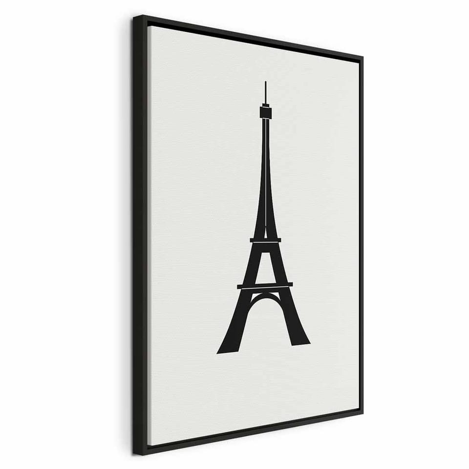 Obraz - Wieża Eiffla prosta grafika w czerni i bieli rozmiar 40x60, wykończenie W ramie drewnianej czarnej