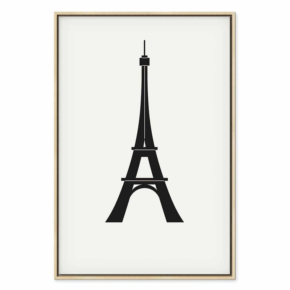 Obraz - Wieża Eiffla prosta grafika w czerni i bieli rozmiar 40x60, wykończenie W ramie drewnianej naturalnej