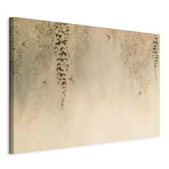 Obraz - Wiosenny sad - koliberki wśród gałęzi drzew w odcieniach beżu rozmiar 120x80, wykończenie Na płótnie włoskim