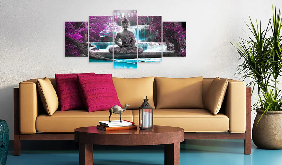 Obraz - Wodospad i Budda rozmiar 100x50, wykończenie Na płótnie włoskim