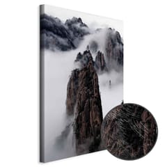 Obraz - Wysokie góry we mgle (1-częściowy) - krajobraz chmur między skałami rozmiar 40x60, wykończenie Premium Print