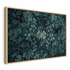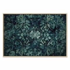 Obraz - Wzór orientalny dywanowy: szmaragdowe ornamenty i przetarte wzory rozmiar 90x60, wykończenie W ramie drewnianej naturalnej