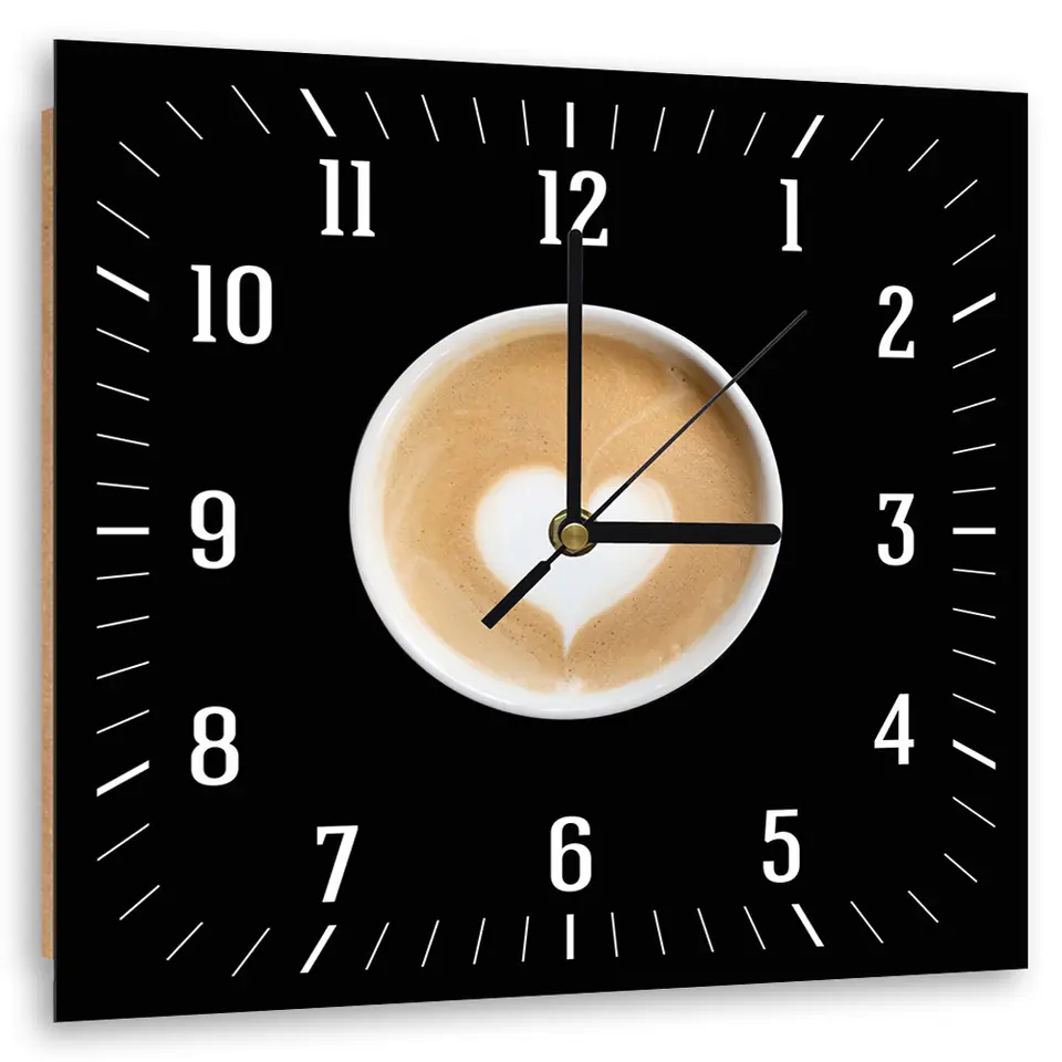 Obraz z zegarem, Kawa z sercem (Rozmiar 80x80)