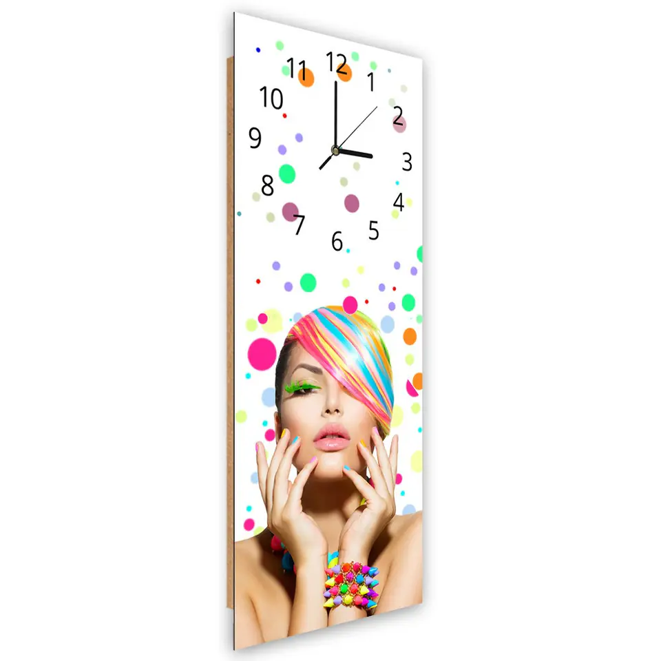 Obraz z zegarem, Kobieta w kolorach (Rozmiar 25x65)