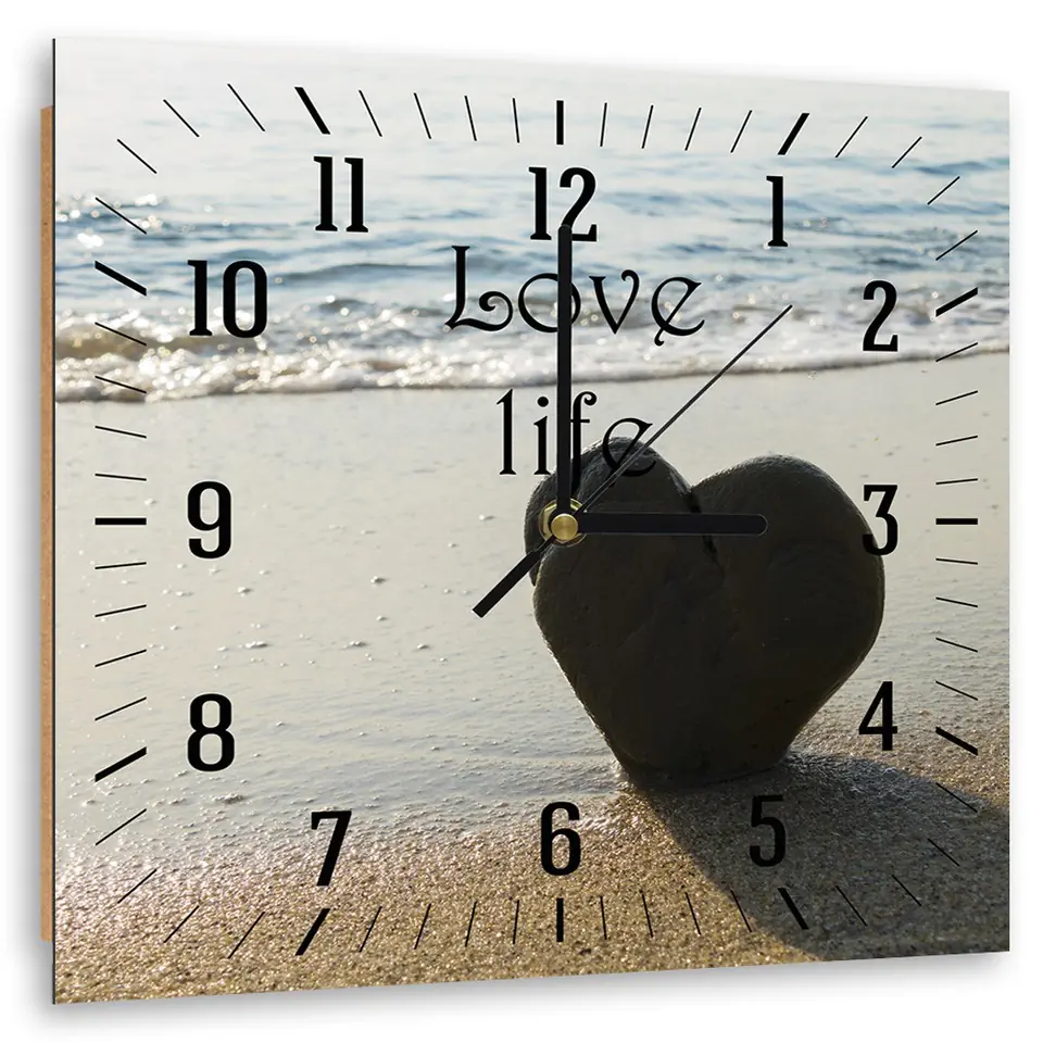 Obraz z zegarem, Serce na plaży (Rozmiar 40x40)