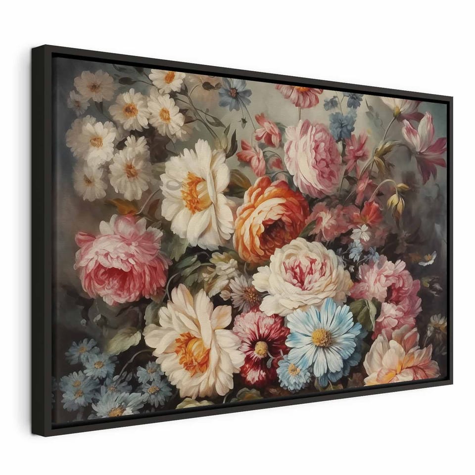 Obraz - Zapach ogrodowych kwiatów rozmiar 90x60, wykończenie W ramie drewnianej czarnej