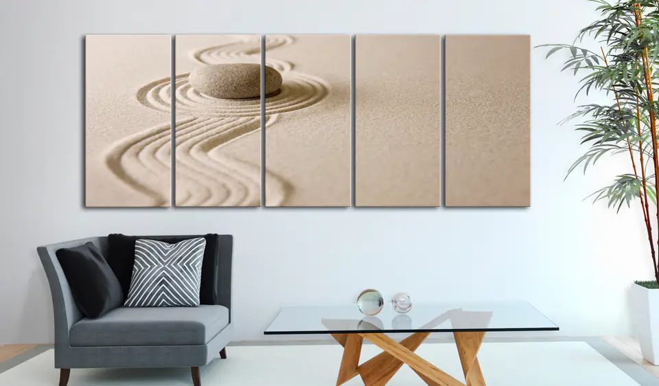 Obraz - Zen: Piasek i kamień rozmiar 225x90, wykończenie Na płótnie włoskim