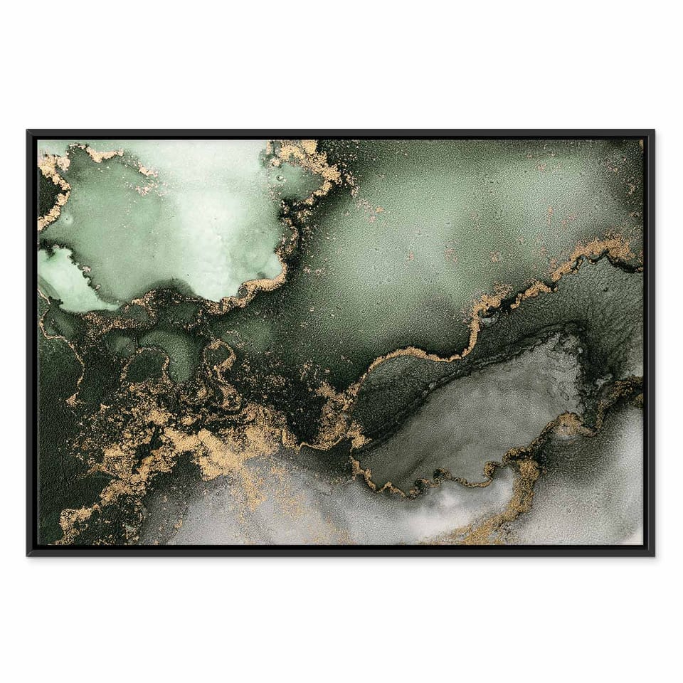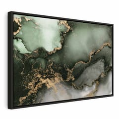 Obraz - Zielona akwarela - abstrakcja inspirowana strukturą marmuru rozmiar 60x40, wykończenie W ramie drewnianej czarnej