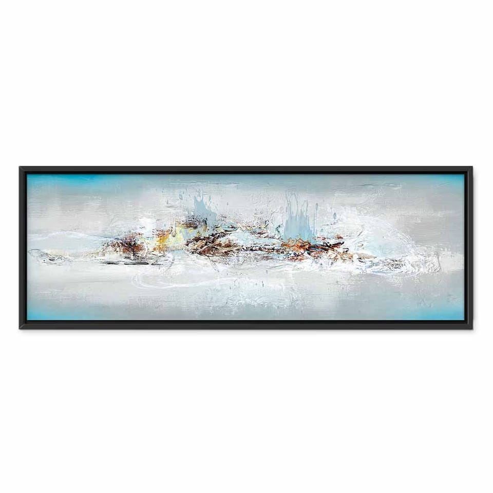 Obraz - Zima za oknem (1-częściowy) wąski rozmiar 90x30, wykończenie W ramie drewnianej czarnej