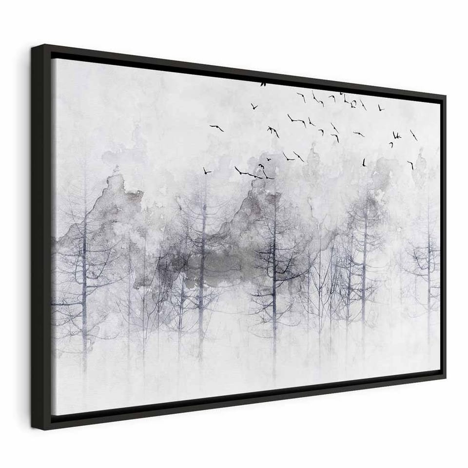 Obraz - Zimowy las (1-częściowy) szeroki rozmiar 90x60, wykończenie W ramie drewnianej czarnej