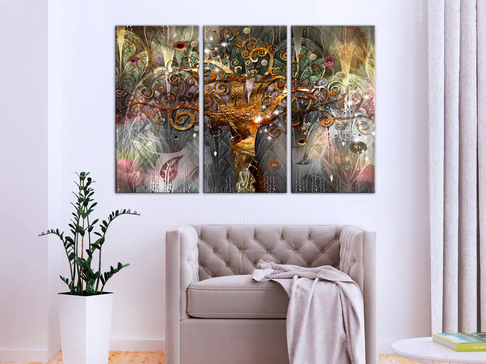 Obraz - Złote drzewo (3-częściowy) rozmiar 90x60, wykończenie Na płótnie włoskim