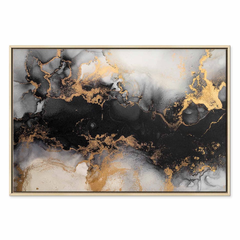 Obraz - Złote eksplozje - abstrakcyjny wzór inspirowany marmurem rozmiar 120x80, wykończenie W ramie drewnianej naturalnej